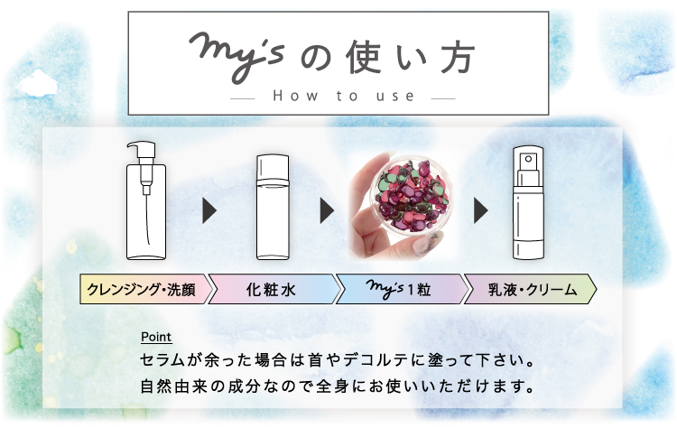 ①お買上げ明細書(納品書)②my’s専用ケース(専用ケース)③my’sセラムの容器箱(パッケージ)✕3④ブランドブック⑤スキンレポート⑥商品の箱、計6点をご返送ください。